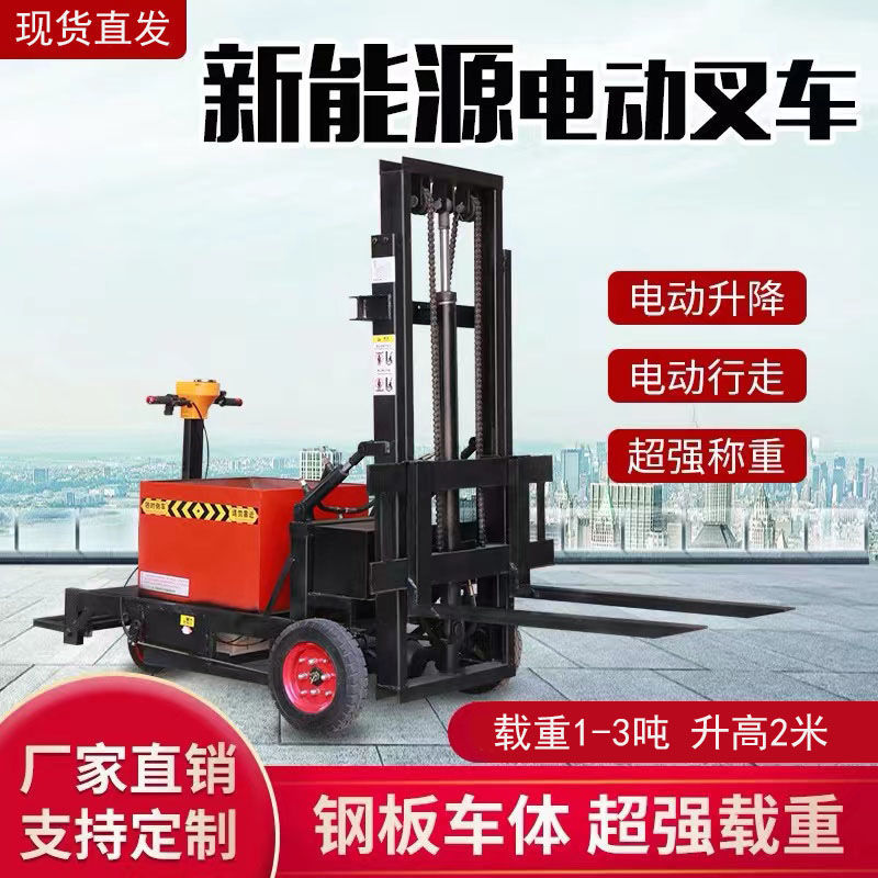 集贤县小型电动叉车1吨站驾式2吨液压升高铲车全自动仓储堆高车